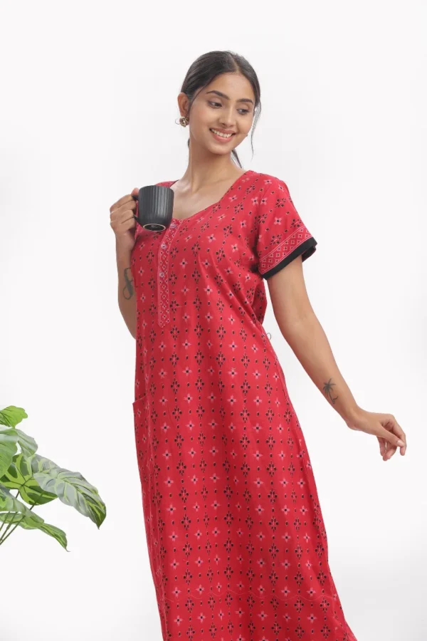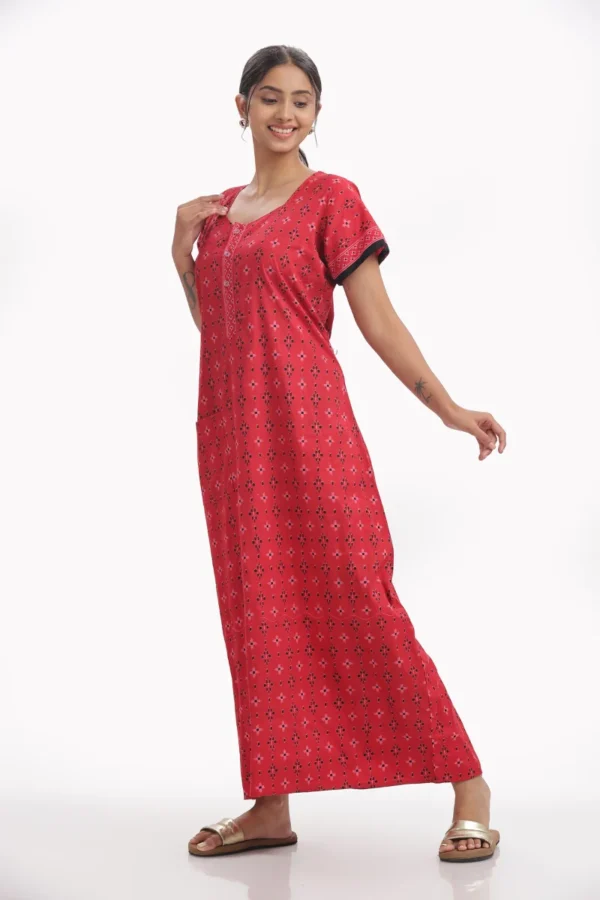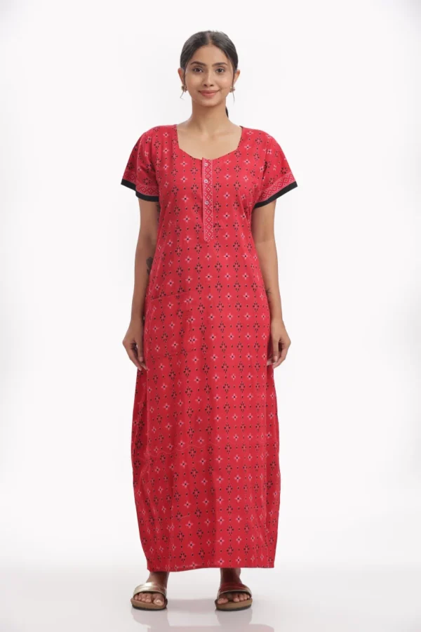 Crimson Charm Cotton Nighty | Bright Style, All-Night Comfort