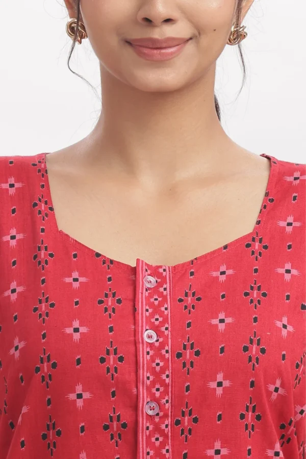 Be the first to review “Crimson Charm Cotton Nighty | Bright Style, All-Night Comfort” Cancel reply