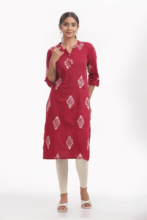 Be the first to review “Elegant Maroon Cotton Printed Kurta”