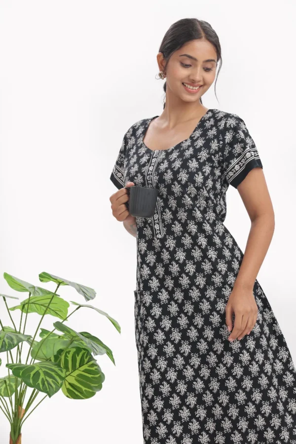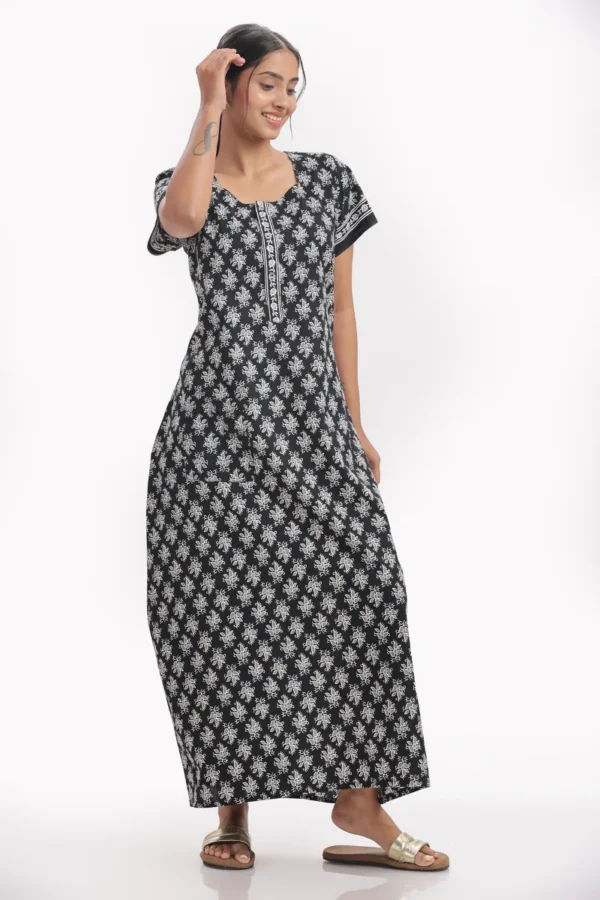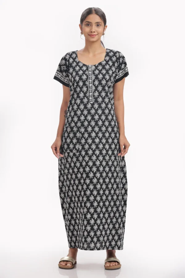 Midnight Bloom Cotton Nighty | Elegant Comfort, Effortless Nightwear