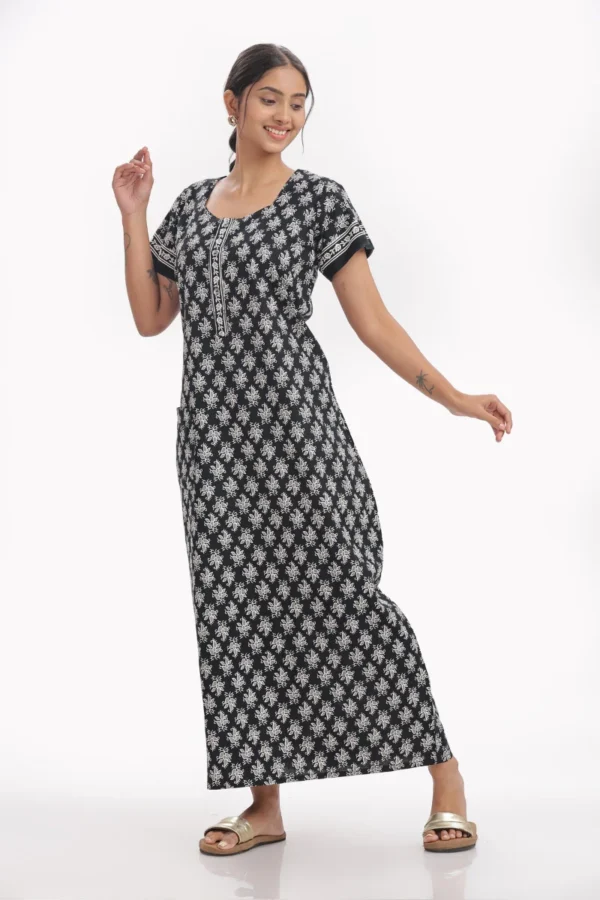 - Style: Printed long cotton night gown