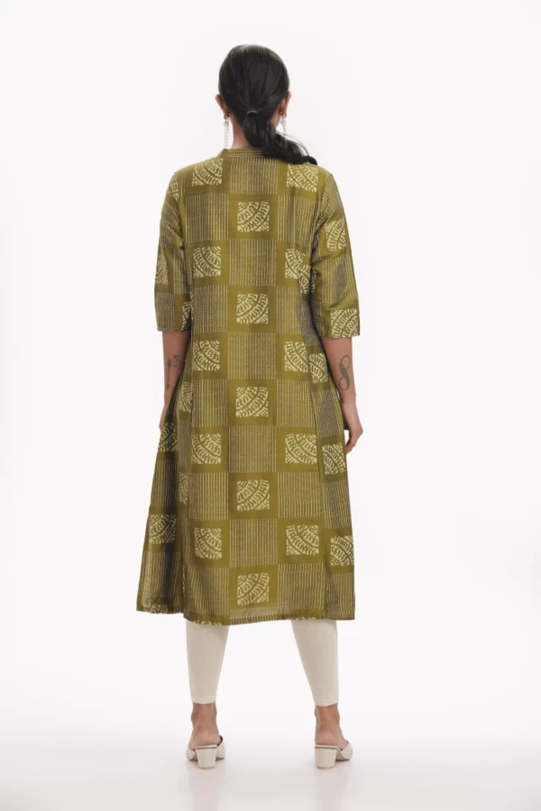 Step into effortless sophistication with this Moss Green Mulberry Silk Printed Kurta, where comfort meets contemporary heritage. The bold square-block motifs and fine vertical lines create a perfect blend of traditional design and modern form. Lightweight and lustrous, it’s tailored for those who love artisanal style with a graceful flow.