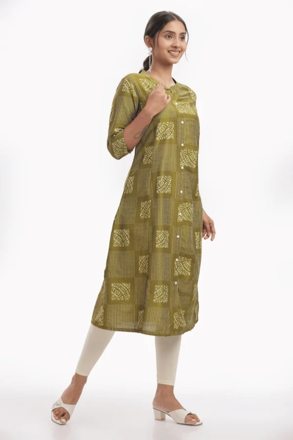 This kurta features a sleek straight-cut silhouette, shell-style buttons down the front, and a mandarin collar that adds to its urban ethnic appeal—perfect for semi-formal events, casual outings, or festive workwear.